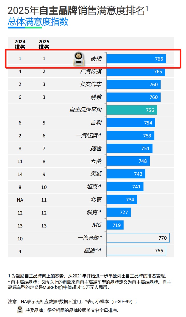 J.D.Power“2025中国销售服务满意度指数SSI”自主品牌榜单