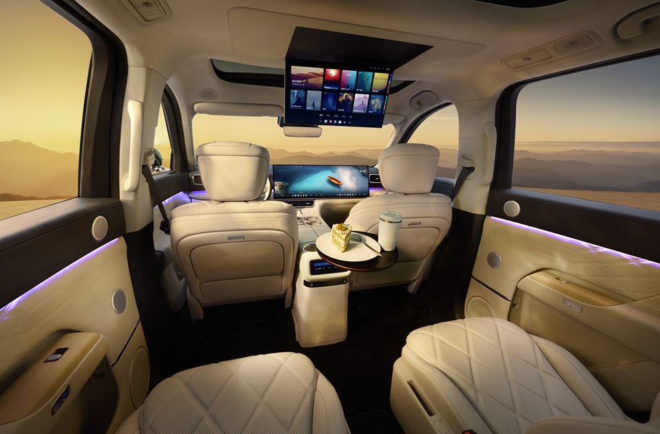 百万级豪华是从视听到触感的全维升级。深度融入东方美学的风云T11外观豪华大气,座舱配有17㎡皮质工艺包覆面积,配合全系标配的全车静音玻璃与静音轮胎等配置,构建了深空静谧座舱,让豪华体验无处不在。同时,风云T11还搭载前排30吋6K一体寰宇屏与17.3吋后舱娱乐屏,结合峰值功率达2880W的7.5.4.2全景声布局的伯牙之音豪华音响与256色律动氛围灯,让每一次出行都是一场影音盛宴。