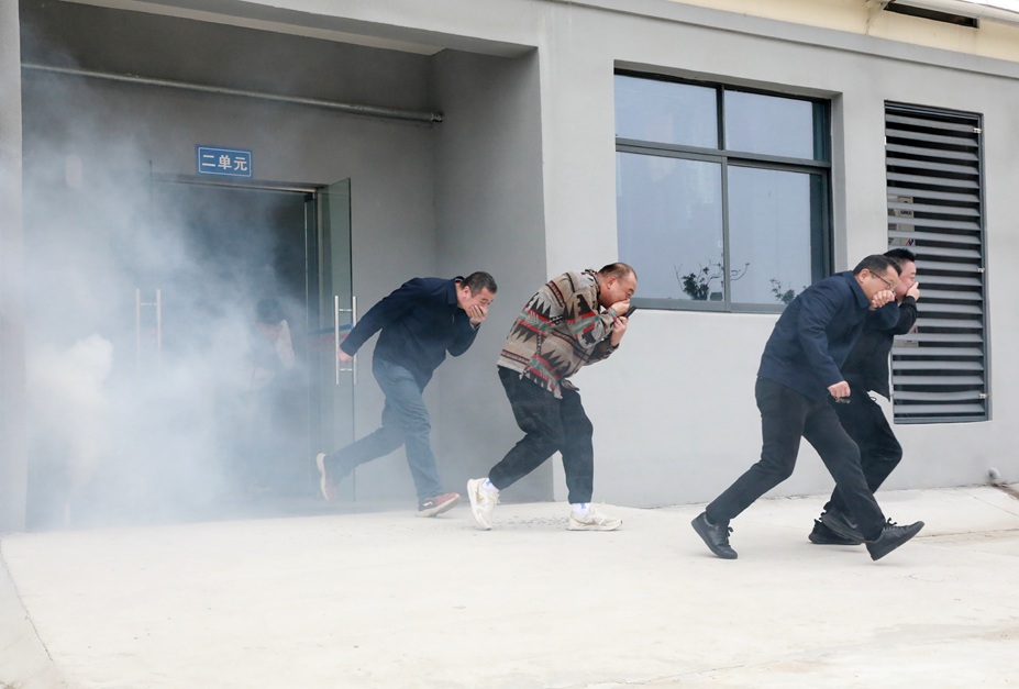 演练现场,工作人员向参演人员细致讲解灭火器与消防栓的使用要点和逃生疏散自救技能,并进行现场实操示范。随后,参演人员按照“低姿弯腰、捂住口鼻、沿安全通道快速撤离”的原则,在引导人员的指挥下,紧张有序地从“火灾现场”撤离至指定安全区域,整个疏散过程快速、高效,无人员“受伤”或“遗漏”。疏散演练结束后,参演人员在演练区域分别进行灭火实操练习,工作人员全程跟踪指导,及时纠正不规范动作,确保每个人都能熟练掌握灭火器材的正确使用方法。