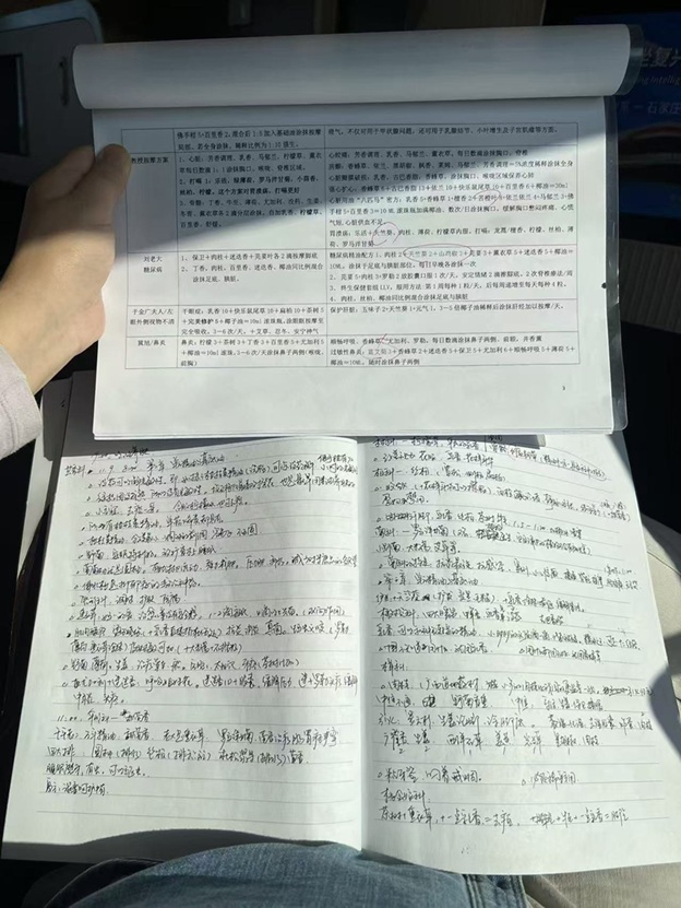 先义老师对飞的引导可谓倾尽全力:发现点滴成长便不吝褒赞,业务上的每个环节都亲自示范、耐心指导,直至确认飞完全掌握才罢休;飞的课堂笔记、学习感悟,都会被第一时间分享到社群,引发伙伴们的广泛呼应,让飞在社群中收获满满的认可与动力。生活上,先义老师更是无微不至:上课全程陪伴左右,饮食起居形影不离,每晚还会前往飞的房间,边讲解芳疗技法边实操抹油。这份真挚的师恩,深深扎根在飞的心底。