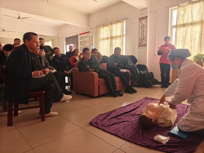 最受欢迎的当属AED教学环节!井口保健站医护人员结合真实案例,从原理到操作手把手教学,电极片怎么贴、除颤步骤咋走,讲得明明白白。职工们争相实操,医护人员现场纠错,确保大家“学得会、用得上”。