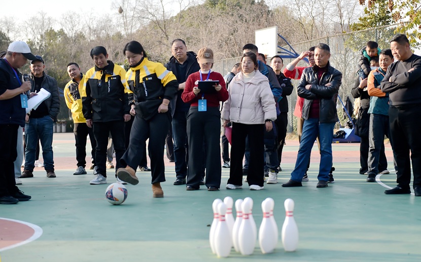 2025年12月16日,在安徽省合肥市庐州公园篮球场,职工在参加扔飞盘比赛。为丰富新就业劳动者文体生活,当日,合肥市庐阳区总工会、大杨镇总工会、庐州公园管理处联合开展凝新聚活力 奋斗新征程庐阳区新业态劳动者趣味运动会,来自庐阳区11个乡镇街道的外卖小哥、快递员、网约车司机等新就业劳动者参加了扔飞盘、足式保龄球、乒乓球托球跑等趣味项目的比赛。 葛传红