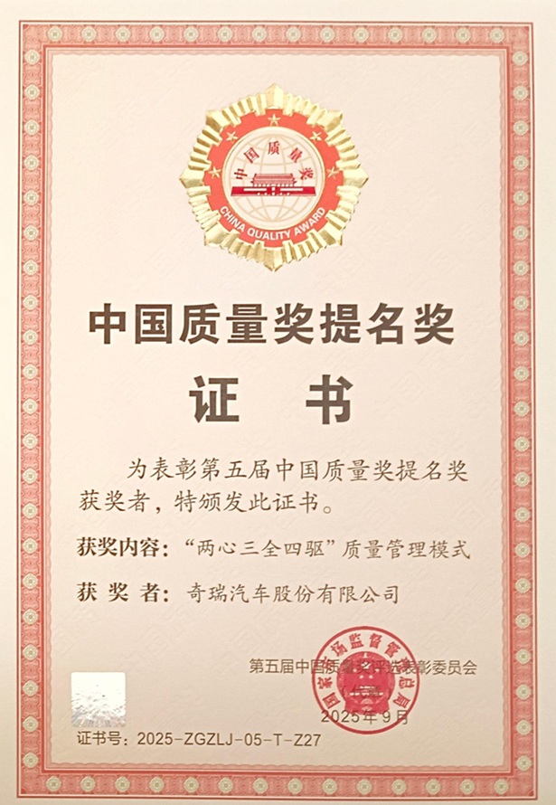 正如奇瑞汽车股份有限公司董事长尹同跃所言:“质量比销量更重要,创新比盈利更精彩。”此次获奖,不仅是对奇瑞长期以来坚守质量生命线、持续推动管理体系创新的高度肯定,也进一步巩固了其在汽车行业中的质量引领地位。未来,奇瑞将继续秉持以质取胜的战略定力,充分发挥质量标杆的引领作用,为推动中国汽车产业高质量发展、向全球价值链高端迈进贡献更多“奇瑞智慧”。