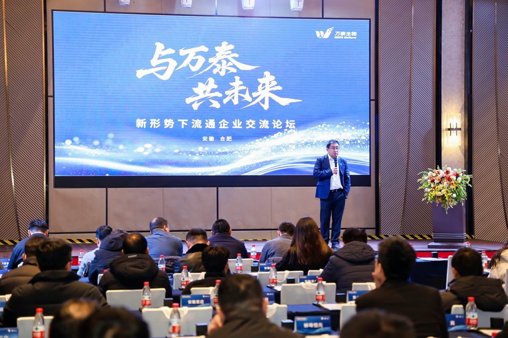 论坛由万泰生物安徽省区经理王健主持。开场环节,北京万泰市场部总监张宇先生致欢迎辞。他表示,在行业变革的关键时期,企业更需要秉持长期主义,强化研发创新的核心实力,同时深化厂商与流通企业的协作至关重要,并期待通过本次论坛凝聚共识,共拓未来。