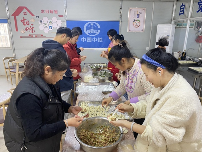 中铁四局一公司南邓高速项目工会开展冬至包饺子活动