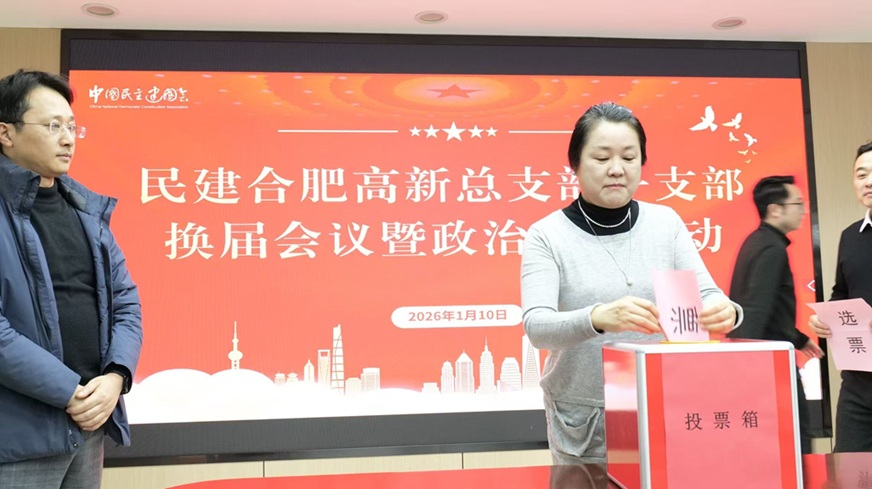 2026年1月10日民建合肥市高新区总支一支部换届会议在高新区管委会召开。会议由王冬梅主持,支部17名会员参会,民建经开区总支范正峰、高新区总支前主委周月萍、高新区总支主委黄明明应邀出席。