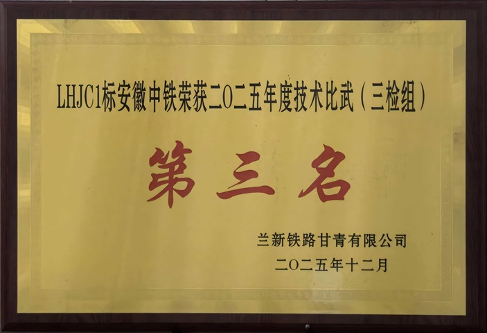 近日,兰新铁路甘青有限公司通报表扬了兰合、西成铁路2025年度试验检测技术比武获奖单位,中铁四局工程技术公司西成甘青段第三方检测项目、兰合铁路第三方检测项目在技术比武中凭借优异的整体成绩从9个第三方检测项目中脱颖而出,分别获得团体第一名和团体第三名的好成绩。