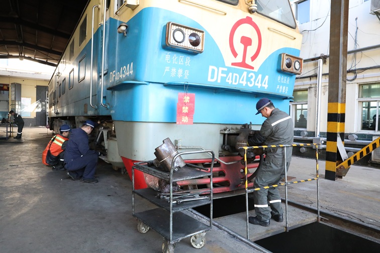 上午10时,谢桥矿站开往潘集电厂的77452次列车稳稳停在田集车站,机务段田集运转车间副主任王莹手里攥着检查工具,正围着机车做“体检”。“迎峰度冬期间,我们投入21台机车,每日列车增至3—4列,检车、挂车次数大幅增加。”王莹一边检查机车部件,一边跟记者说,“为了不耽误发运,机务段每天配20个机班,还留着1个预备班应急,保证‘不掉链子’。”