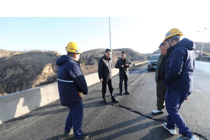 进矿公路是煤炭运输的咽喉要道,千万不能掉以轻心。2月22日一大早,得知进矿公路中间路段出现裂隙后,皖北煤电集团智能公司党委副书记、总经理李金铭立即带领综合办公室、救护中队负责人前往事发现场进行现场办公,坚决疏通煤炭运输“大动脉”,为推动新春高质量发展扫清障碍。