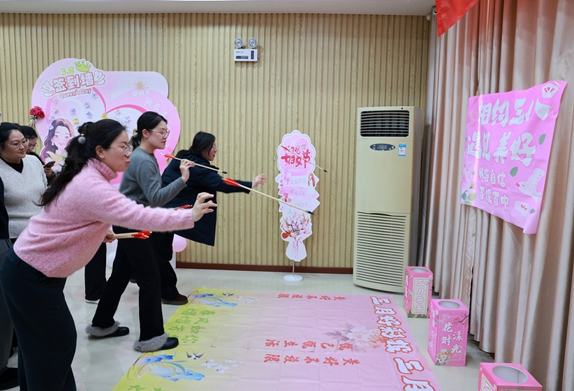 趣味投壶游戏将现场气氛推向高潮。这一传统礼仪游戏吸引了众多女职工踊跃参与,大家或单人挑战,或组队PK,在欢声笑语中比拼技艺、赢取奖品。