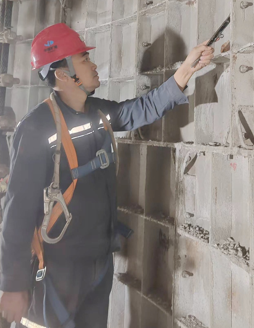 王茂山在现场检查套壁工程质量