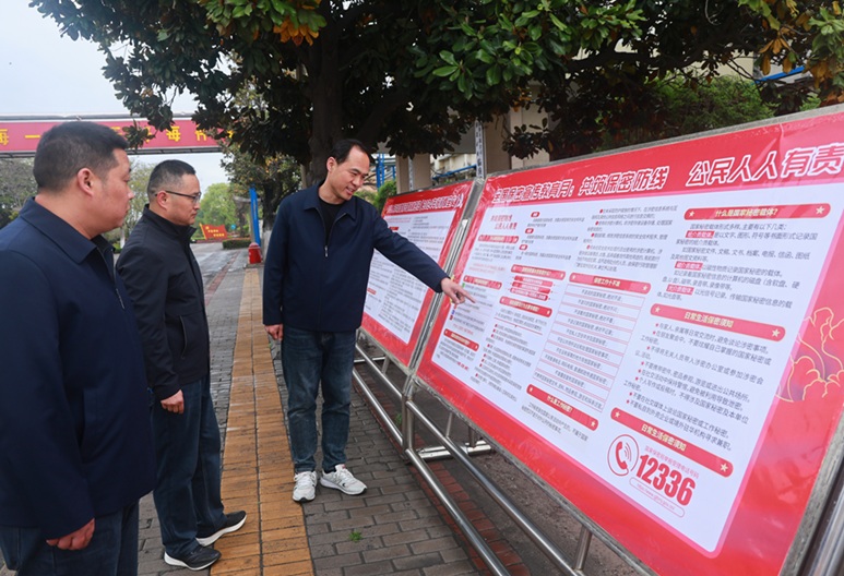 该矿坚持线上线下联动,构建全方位宣传格局。线下,利用井口电子大屏滚动播放国家安全宣传标语、科普短片,在矿区主干道设置宣传牌板,详细解读《国家安全法》《中华人民共和国保守国家秘密法》等法律法规及国家安全重点领域相关知识,让职工随时随地学习。