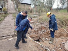 技术人员正在该县雷埠乡白桥村浇筑石桥所需的横梁