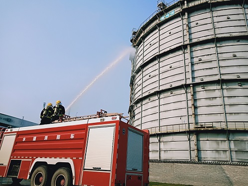 该公司电石厂煤气柜泄漏应急演练现场