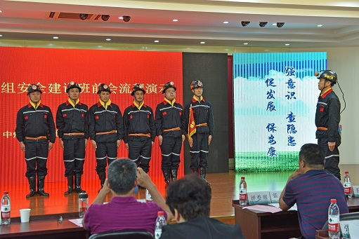6月29日,中煤新集公司口孜东矿在阜阳市28个代表队班组建设成果展示竞赛中荣获二等奖。口孜东矿综掘二队代表队以娴熟的动作、全新的班组建设理念及规范的班前会流程展示,完美展现了当代煤矿矿工的时代风采。图为, 颁奖活动现场。