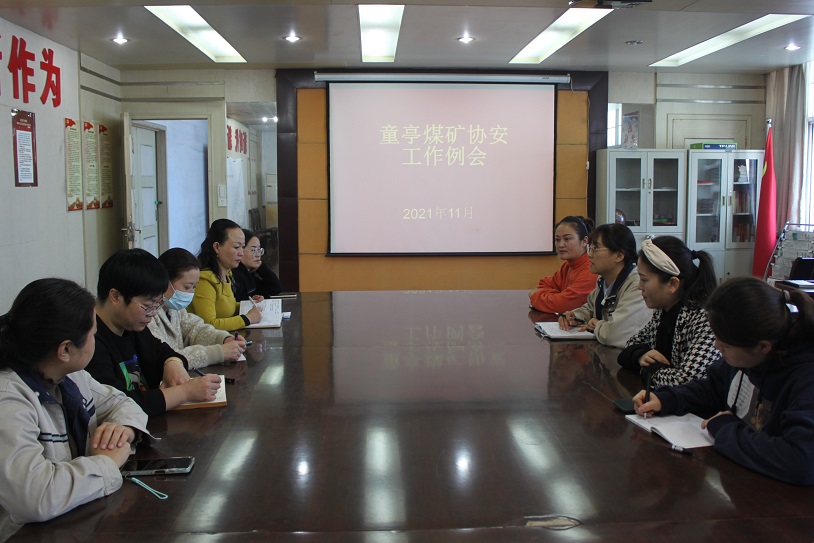 11月4日,从童亭矿四楼技术会议室传来一阵阵热烈的讨论声。这是矿工会女工部正在召开的协安工作例会现场。