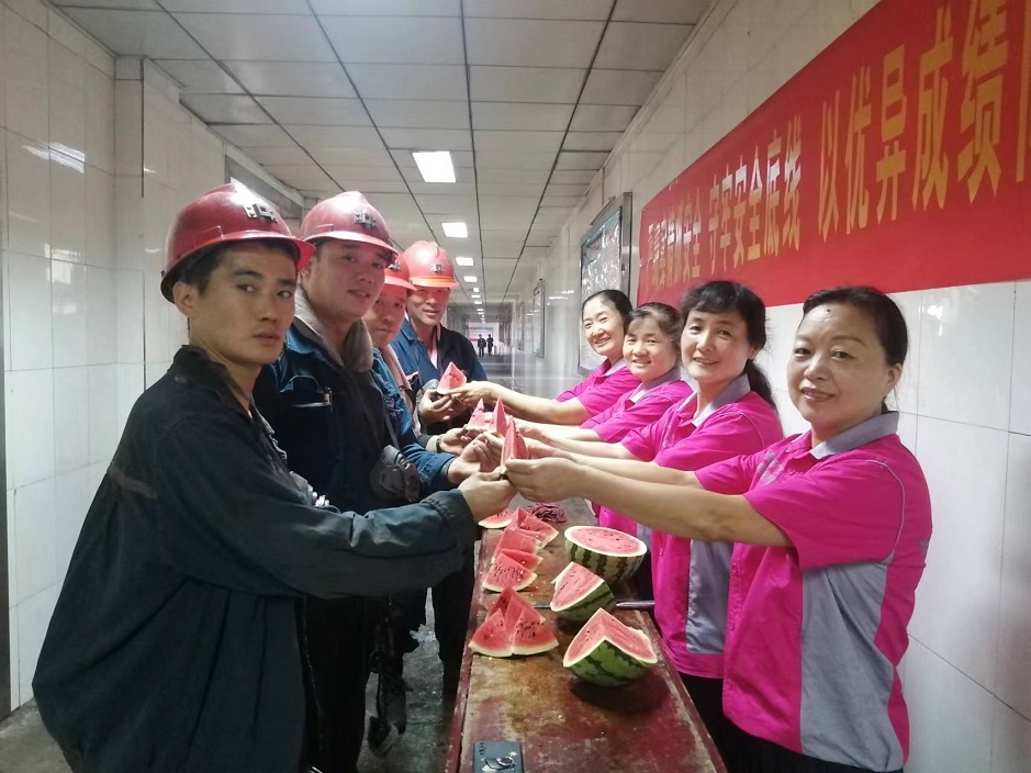 “矿工师傅们,辛苦了!吃块西瓜解解渴。天气炎热,咱们可一定要注意防暑降温,下井注意安全!”“会的,会的,踏进井口走廊就闻到西瓜的香甜味了,我感觉连呼吸都是甜的!那西瓜真甜,都甜到俺心坎里了!”淮北双龙公司井口协安员把一块块香甜西瓜递到一线职工手里,一边叮嘱着安全,让大家切实感受到夏天的丝丝清凉和“家”的温情,也让职工的幸福有了“温度”。