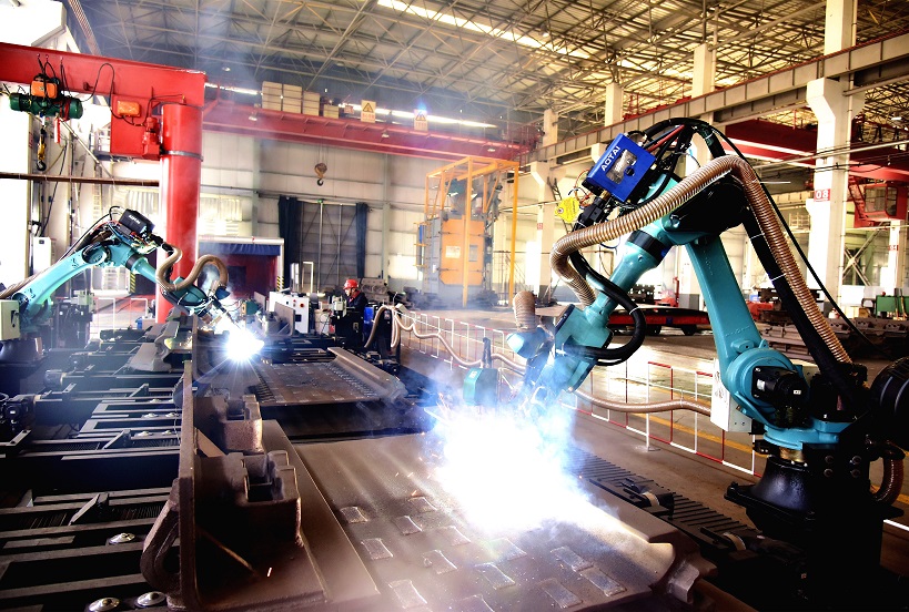12月19日,淮北矿业集团生产装备分公司一名职工在电脑前操作焊接机器人对刮板机中部槽进行焊接作业。该公司大力推进新技术、新工艺、新装备研发、引进与应用,不断提高技术装备和修造工艺水平,实现提质增效保安,助力企业高质量发展。图为,一名职工在电脑前操作焊接机器人对刮板机中部槽进行焊接作业