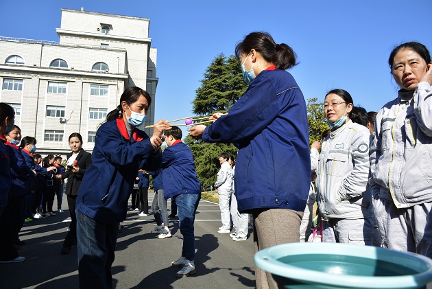 第一个比赛项目是筷子接力运球,考验的是队员手的灵活、稳定性和队员之间的协调配合。哪个队在规定的时间内运送的乒乓球多,哪个队就得到相应的规定积分。第二个比赛项目是传统的拔河比赛,主要比拼队员的身体素质、配合及经验技巧,获胜队同样获得规定积分。比赛现场热闹非凡,喝彩声、笑声、掌声、加油声此起彼伏,气氛异常欢快。比赛按两个项目综合由高到低确定获胜名次。