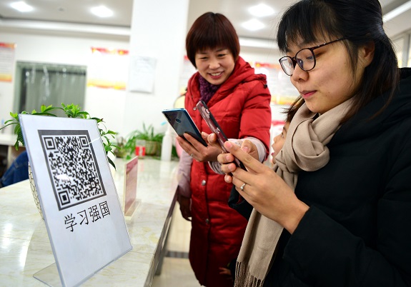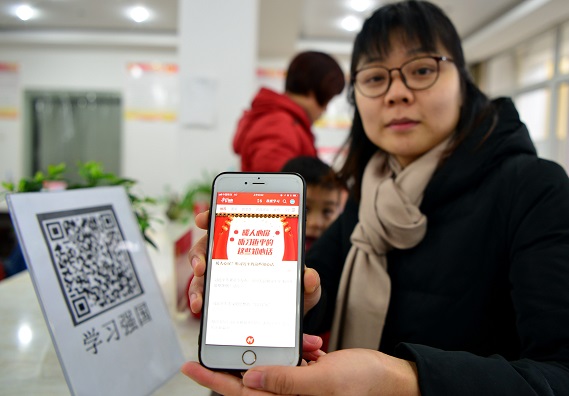 2月12日,在安徽省合肥市庐阳区夹塘社区,党员扫描“学习强国”二维码下载APP注册学习。为推动广大党员干部和群众通过互联网深入学习宣传习近平新时代中国特色社会主义思想和党的十九大精神,合肥市各社区组织党员干部和群众下载“学习强国”APP,利用手机端登录学习平台,做到随时可学,处处可学,掀起全民学习热潮。