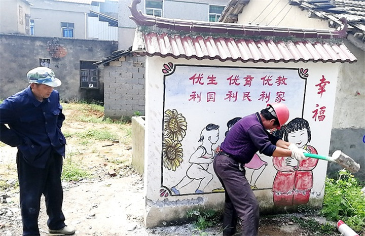 为进一步提升农村人居环境,提高群众生活质量,怀宁县江镇坚持边排査边拆除的原则,共摸排出敞口垃圾池75处,拆除工作正在有序进行。图为,4月22日上午,工人们正在该镇对镇尚存的敞口垃圾池、垃圾房进行拆除。