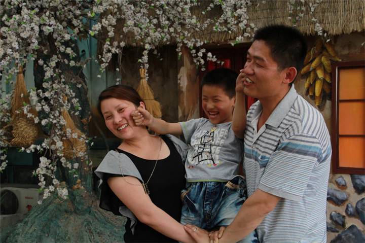 职工丁景胜幸福的一家三口