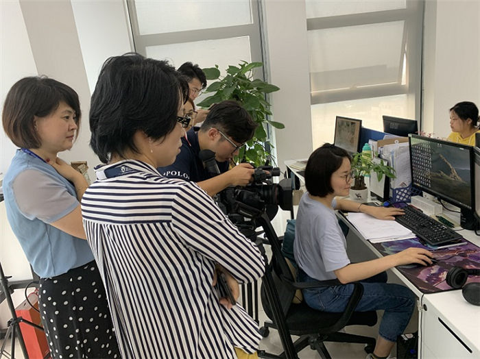 媒体记者们在吴鑫坤总经理的陪同下观看数据处理过程