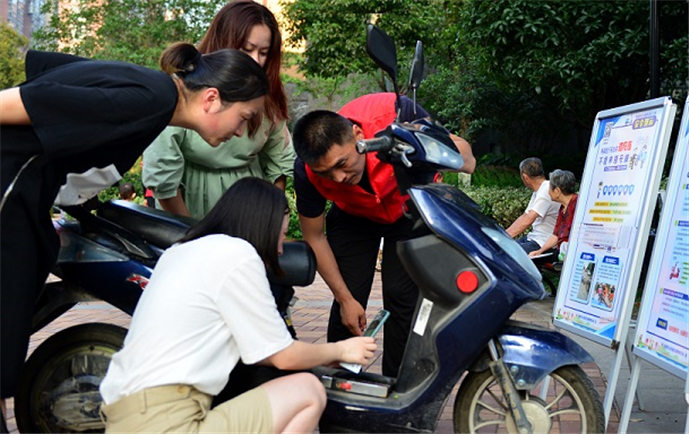 为方便辖区群众办理电动车上牌,8月24日,安徽省合肥市庐阳区大杨镇综治办联合清源社区组织“党员服务队”来到小区开展电动车上牌服务,为居民介绍电动车上牌流程,义务帮助小区居民