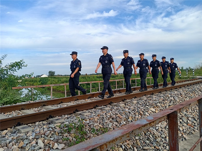 该公司保卫部新区铁路押运大队在铁路专线上巡逻