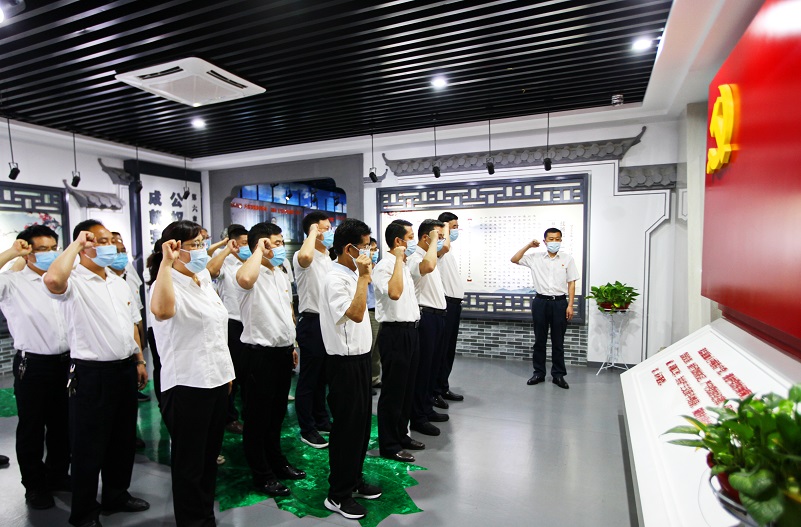 参观结束后,大家面向鲜红的党旗,高举右拳,再次重温了入党誓词。
