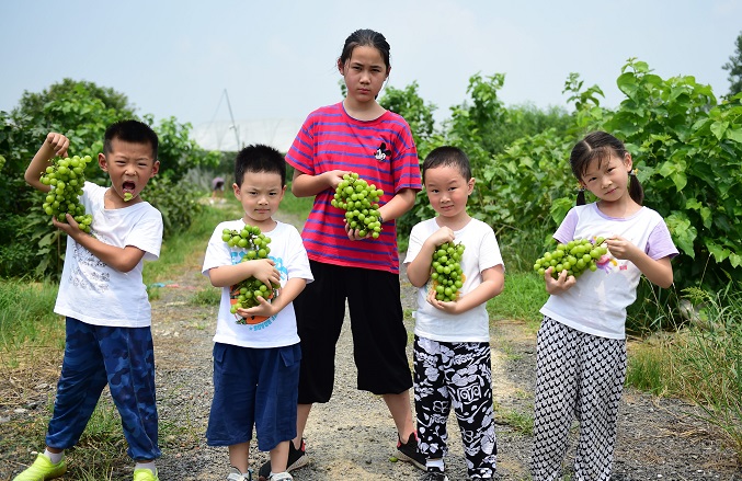 2021年8月1日,安徽省合肥市庐阳区杏花村街道金都社区妇联、关工委联合开展“留守儿童快乐采摘”活动,组织辖区留守儿童来到合肥市庐阳区三十岗乡一采摘园采摘葡葡萄,体验采摘的快乐,度过开心的暑假。