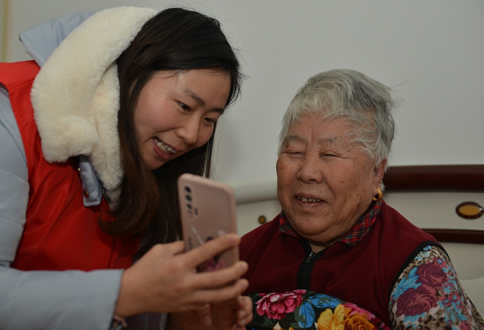 为给行动不便无法到社区办理企退认证的老人进行认证,安徽省合肥市庐阳区大杨镇王墩社区党委联合方圆社工开展“企退认证 服务上门”活动,社区党员志愿者、社工来到一些行动不便的老年人和高龄老人家中进行上门认证,确保老人能及时领取养老金。图为,2022年1月5日,在合肥市建材三厂生活小区,社区工作人员上门为老人进行企退认证。