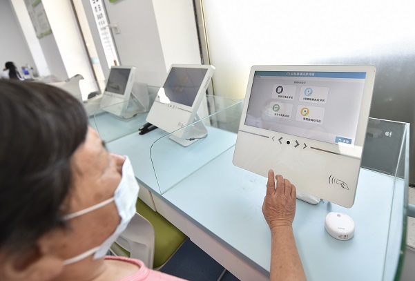 目前,合肥市基层社区已建设约20个智慧健康小屋。图为,2022年6月15日,居民在合肥市庐阳区三孝口智慧健康小屋进行健康检测。