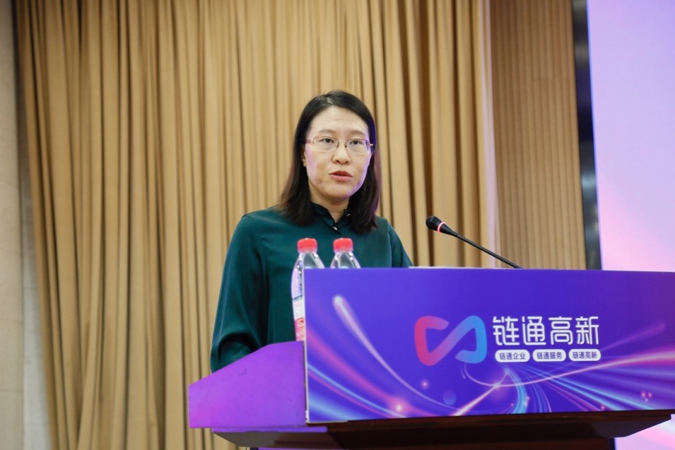 高新区党工委委员、管委会副主任贺菲进行了开场致辞,她总体介绍了高新区基本情况、“链通高新”平台情况以及高新区工业互联网和专精特新发展情况。贺菲指出,高新区将紧跟国家战略部署,推动工业互联网赋能千行百业并不断加快专精特新培育,希望“链通高新”平台继续发挥好桥梁纽带作用,通过线上线下紧密结合,为园区企业提供信息准确、对接方便、保障有力的综合服务。