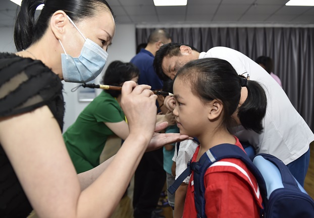 2022年8月24日,在安徽省合肥市庐阳区残疾人康复中心,小朋友在表演节目。在8月25日第六个全国残疾人预防日以及新学期来临之际,当日,合肥市庐阳区残疾人康复中心联合大杨镇王墩社区开展“普及残疾预防知识建设健康中国”2022年庐阳宝贝“开学号角为你吹响”入学典礼活动,与会嘉宾为通过“精准康复”和“转衔评估”达到了入学入园标准的小朋友点朱砂,并送上新学期的小书包。