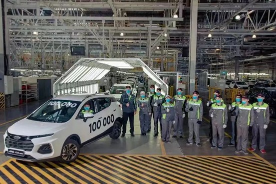 2020年,江汽集团哈萨克斯坦工厂第10万台下线