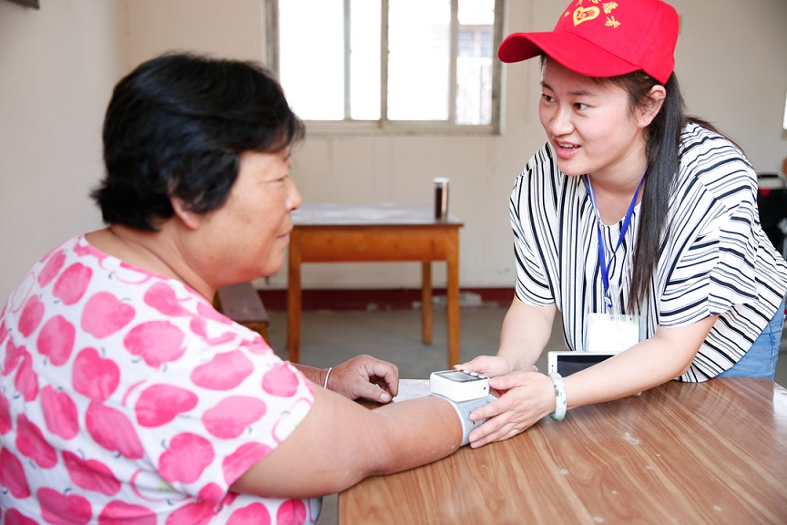 储召艳为企业退休职工量血压