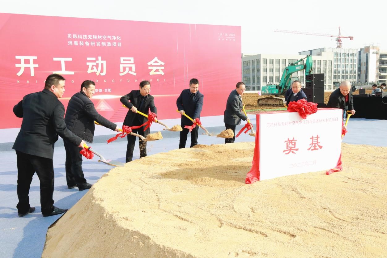 2月21日,贝昂科技无耗材空气净化消毒装备研发制造项目在合肥高新区柏堰科技园奠基开工,合肥市委常委袁飞出席活动并宣布项目开工,高新区党工委委员、管委会副主任方向民致辞,柏堰科技园党工委书记、管委会主任范成贵,贝昂科技创始人、董事长冉宏宇,中国科学技术大学工程科学学院执行院长吴恒安,两淮控股集团党委副书记、总经理李海蕾等参加活动。