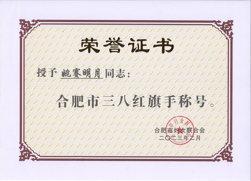 为表彰先进树立典型,发挥榜样示范引领作用,日前,合肥市妇女第十三次代表大会上揭晓了2022年度合肥市“三八红旗手(集体)”。海恒教育公司总经理姚赛明月榜上有名,荣获合肥市“三八红旗手”荣誉称号。