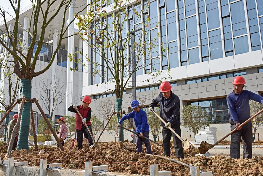 作者:丁晓燕 彭学英 工人们正在种植树木 吊塔林立、机声和鸣在合肥高新区重点产业项目建设现场一片繁忙景象,一批批重点产业项目开启春忙模式,进度条持续刷新。连日来,合肥高新区以敢闯新路、勇当先锋的姿态,加速产业园区建设步伐,为区域经济腾飞筑巢引凤。 即将建成的集成电路总部基地 集成电路总部基地,助力合肥集成电路产业芯光灿烂 集成电路总部基地位于