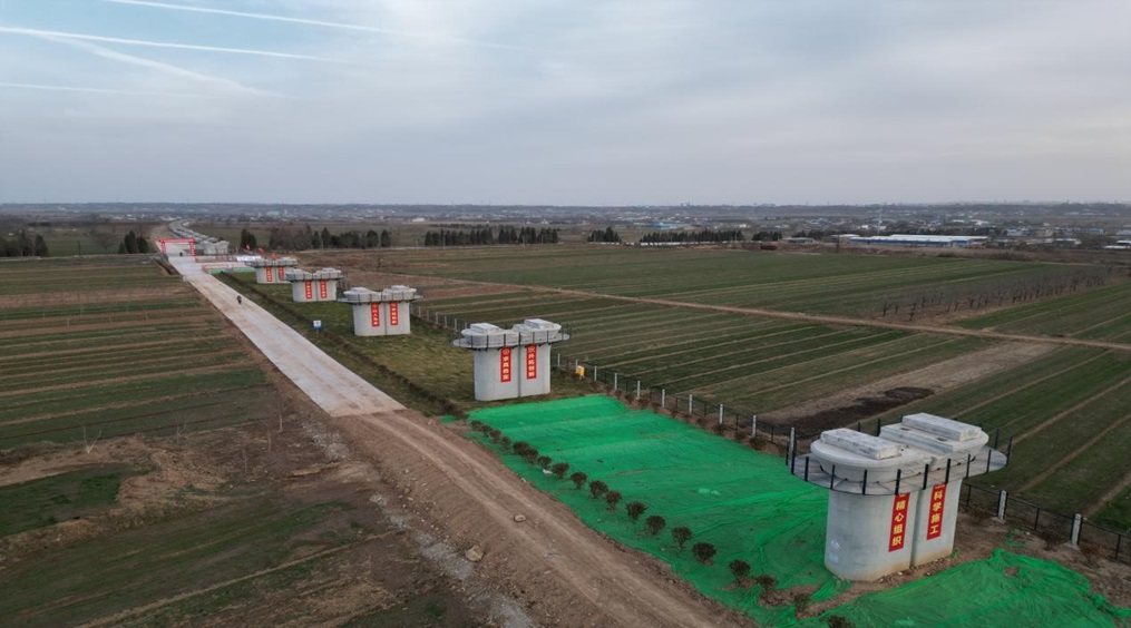 在石川河连续梁施工现场,施工人员正在39米多高的桥墩上安装钢模板,钢筋网格焊接场地弧光闪闪,到处呈现一幅幅抢进度、保工期的生动场景,各个桥墩入口搭建起阻燃暖棚,加挂多层岩棉阻燃保温帘,配备焦炭炉、气暖炉、热风炮等保温保暖设备,确保室内温度达到零上10度以上,桩机现场,14台橘红色旋挖机格外引人注目,10多米高的钻杆隆隆作响,在极端天气下当天仍然超额完成了施工任务。