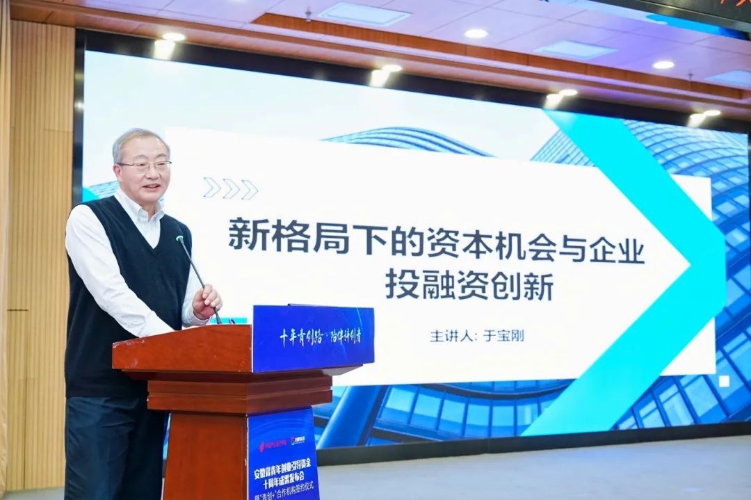 会议现场,青创资金企业家代表作主题分享。安徽容知日新科技股份有限公司董事、高级副总裁罗曼曼,安徽福晴医疗装备有限公司董事长、总经理周玉福分享创业历程、融资经验等,现场气氛热烈。金诺投资管理公司执行总裁、清华大学继续教育学院特聘教授于宝刚作《新格局下的资本机会与企业投融资创新》主题报告,深入浅出地向与会嘉宾解读了中国经济的新格局及新格局下的企业转型升级及投融资创新之路。