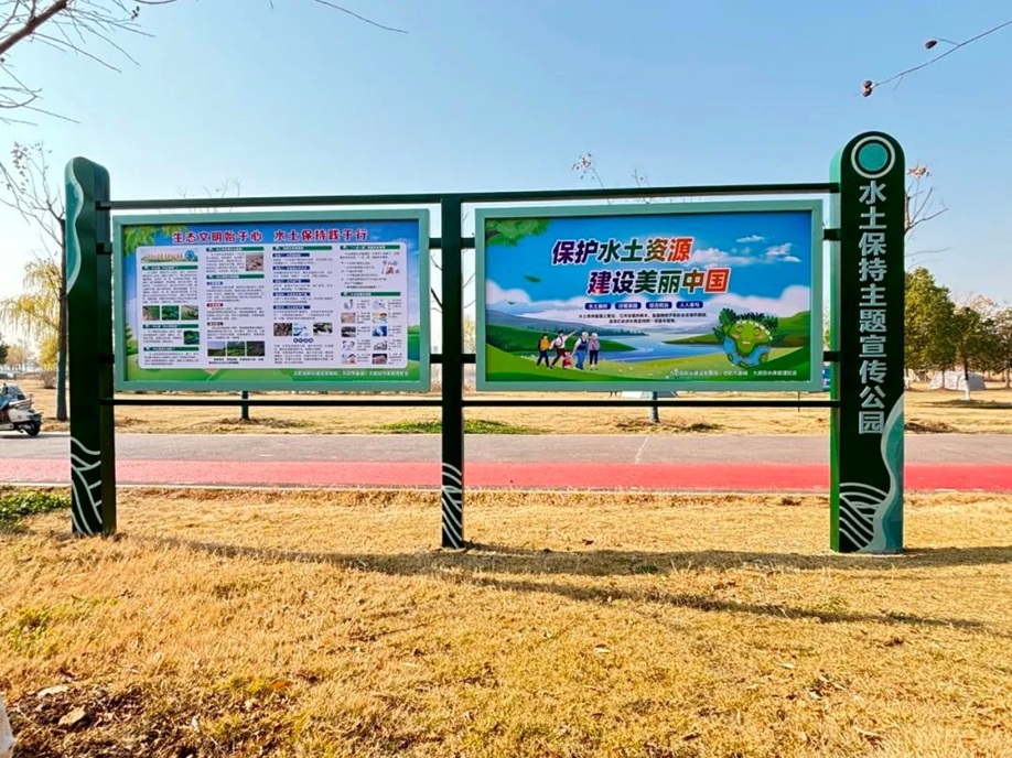 在居民入口处设置水土保持专题宣传栏,通过水土保持主题标牌、宣传栏等,向群众科普水土保持工作,建设家门口的水土保持主题公园,为努力建设天蓝、地绿、水美的靓丽高新增添色彩。