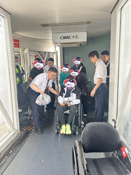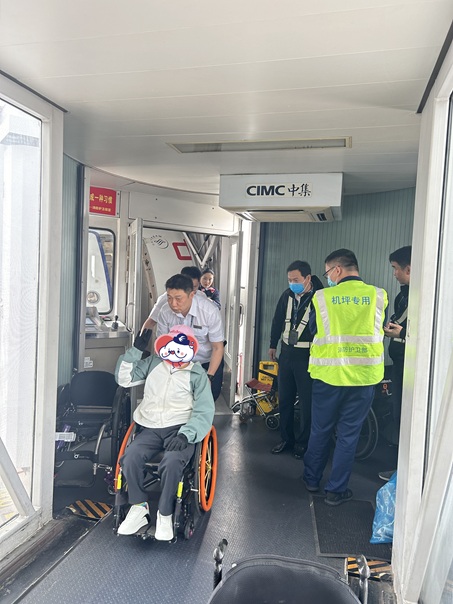 东航安徽分公司的地服人员和乘务组通力协作,全程保障残疾人运动员顺利出行。下午14:05分,当时正值旅客出港高峰期,人手紧任务重,分公司地服部立即调度了2名值班经理、2名值班主任、2名当班组长和多名工作人员前往登机口,并开通专属保障通道,提前准备好轮椅设备。对于下肢行动不便的旅客,乘务员和地服人员共同协助,将其从客舱转移至东航地面轮椅设备上,并与地面调度、行李分拣实时沟通,快速引导他们到达行李提取处,直至送上接机巴士。