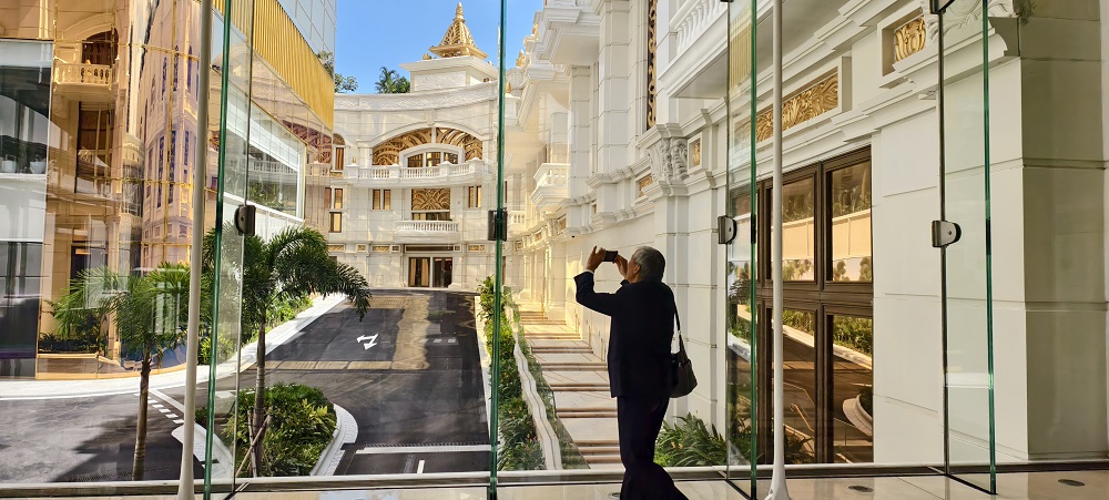 “脚踏澳门威尼斯,脚踹天下威尼斯”,开篇两句以夸张而有力的笔触,将目光聚焦于澳门威尼斯人度假村。这座全球第二大单体建筑,以填海造陆的智慧与风水布局的巧思,复刻了威尼斯水城的浪漫,却又在玻璃工艺的剔透、黄金教堂的璀璨中,悄然融入东方审美的细腻。在郑万全眼中,“脚踏”是对这座建筑奇观的礼赞,更是对中西融合实践的认可;而“脚踹”并非解构与否定,而是一种突破——它象征着中国不再是西方文明的追随者,而是以文化主体性为根基,在全球化语境中与西方平等对话、甚至打破固有认知边界的底气。