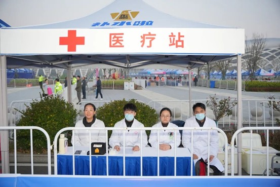 赛道沿线,24个医疗点、24台救护车、72台AED设备、40名省医疗专家、128名医护人员,为参赛选手提供全面及时的医疗救护。