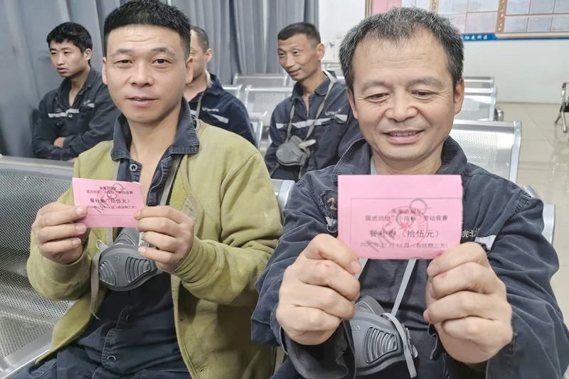 为让竞赛落地见效,该矿构建起“分工明确、衔接顺畅”的考核兑现体系,形成从任务统计到奖励发放的完整闭环。考核周期以任意两天为单位,第三天即可兑现奖励,实现“快考核、快激励”。该矿调度所每日上午9点前精准提供各班组任务完成情况,为考核提供数据支撑;工会负责餐券兑现考核,确保符合条件的职工及时拿到福利;经管科则聚焦工资系数兑现,保障管理与技术人员的激励落实到位。