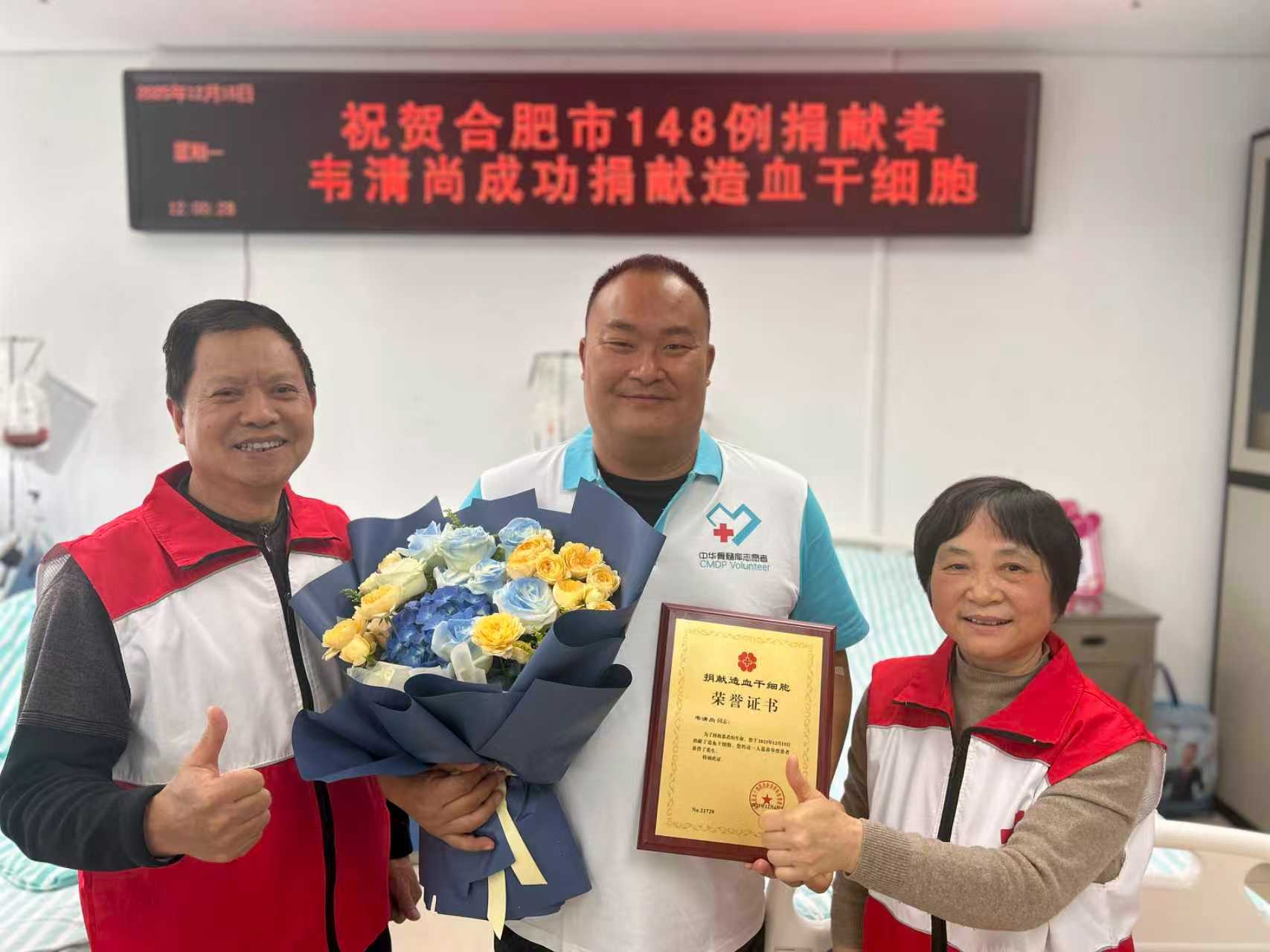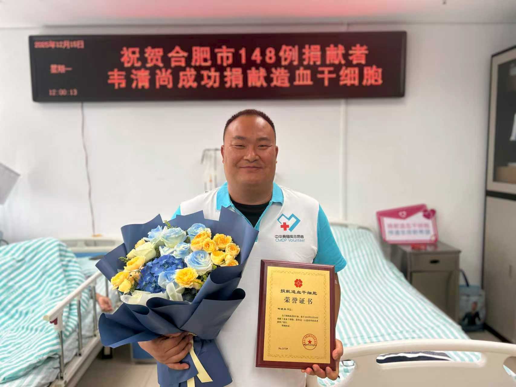 2025年12月15日,冬日的暖阳洒满中科大第一附属医院造血干细胞采集室。韦清尚静静躺在病床上,手臂连接着采集仪器,鲜红的血液在管路中缓缓流淌,历经数小时,顺利采集了234毫升的造血干细胞混悬液,成为合肥市第148例造血干细胞捐献者。这份承载着生命力量的“生命种子”,将跨越山海送往远方,为素未谋面的患病患儿点燃重生希望。