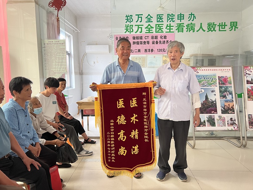 郑万全精于中西医结合诊疗,擅长攻克常见病、多发病及疑难杂症,被当地群众誉为“四家医院的医生”。这一称号的由来,是指那些连北京、南京、上海等地三甲医院都束手无策的顽疾,在他这里往往能迎刃而解,此类治愈案例不胜枚举。