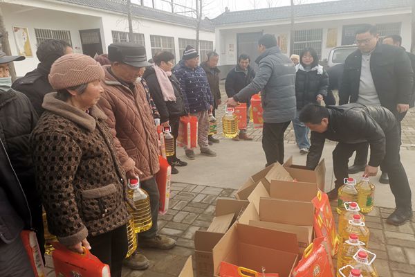 在公司领导目前仍身处外地艰苦营销之时,依然电话提示公司党支部党务工作者与区非公党建第一指导站加大工作联系,精心安排走访慰问活动,并指派公司办公室主任专程带队,到岗位镇的前芮行政村走访慰问贫困户,送去了金龙鱼牌大豆油、稻花香米和精制面粉等过年的实用食品,并送上身体健康、万事如意的祝福,祝愿新的一年里风调雨顺、五谷丰登。
